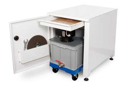 Robustní z lakované oceli, speciálně navržená pro produkty CUTLAM micro. Je vybavena dvířky pro uložení nářadí a řezných kotoučů, zásuvkou v horní části a prostorem pro recirkulační nádrž. Horní zásuvka na drobné díly. Tento kus nábytku je stabilní a má nastavitelné nožičky.