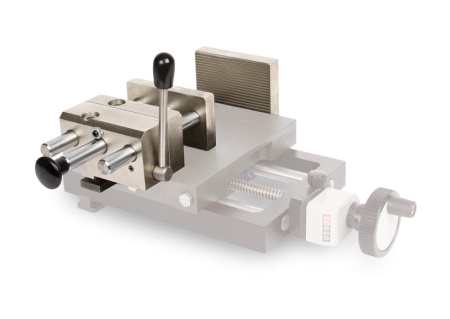 Příčný stůl (pohyb X) k provádění paralelních řezů pro stroj CUTLAM 1.1; Manuální pohyb kolečkem, rozsah pojezdu 100 mm. Přesnost polohování: 0,01 mm;